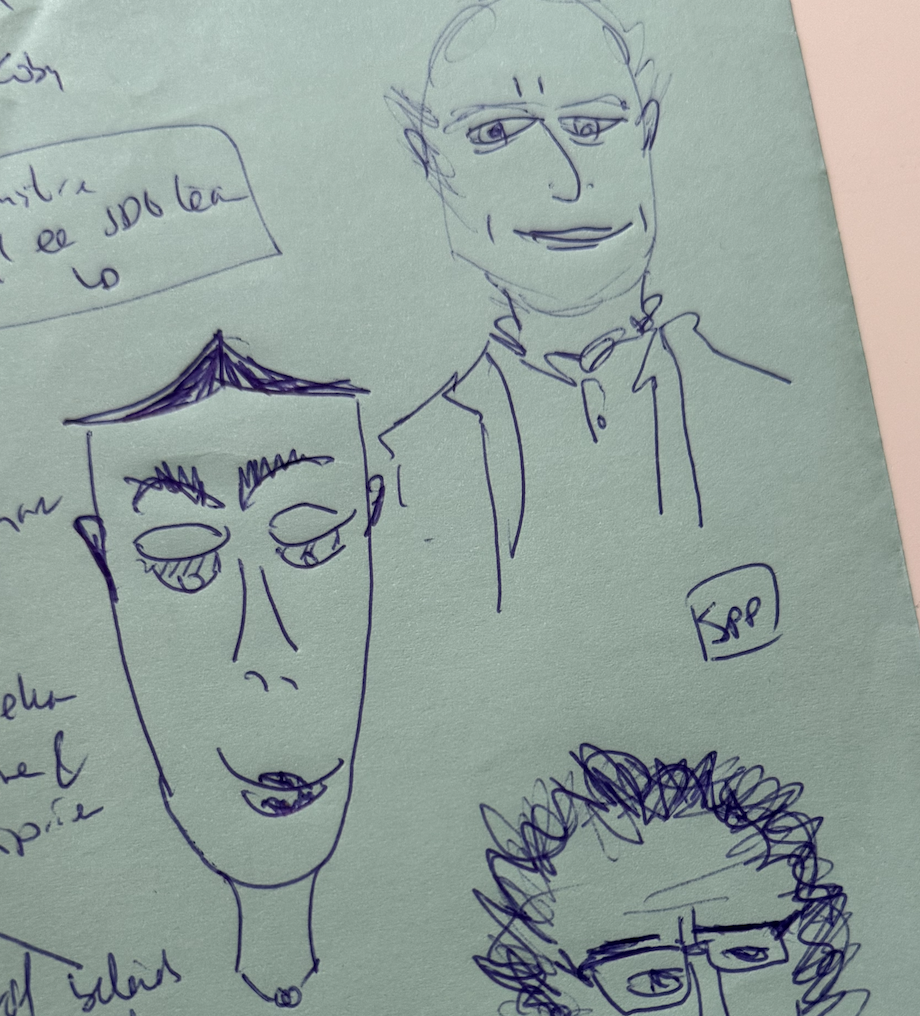 Zo tekende ik tijdens Corona in al die Teams overleggen die je toen de hele dag had poppetjes, schriften vol,…